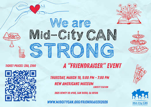 Join us in creating positive, lasting change across San Diego’s diverse communities. Your generous donation to Mid-City CAN empowers local residents, provides essential resources, and strengthens our collective efforts to build a thriving, healthy, and vibrant future for all!
