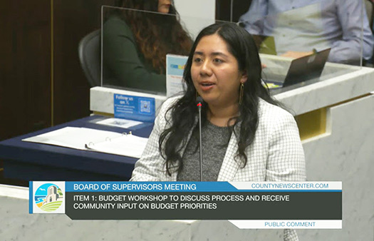 ¡Enero fue un mes lleno de actividad para nuestro Equipo de la Justicia Juvenil! Alejandro, Belén y socios comunitarios, incluyendo la Community Budget Alliance (Alianza Comunitaria Sobre el Presupuesto) y Youth Will, intervinieron en la Sesión de Aportes Comunitarios sobre el Presupuesto de la Junta de Supervisores el 27 de enero para abogar por un estudio de viabilidad de $250,000 que busca impulsar estrategias equitativas y comunitarias que promuevan el bienestar de los jóvenes, el acceso a recursos transformadores y el cierre a largo plazo de los centros de detención juvenil. El Departamento de Desarrollo Juvenil pondrá fin al encarcelamiento juvenil.